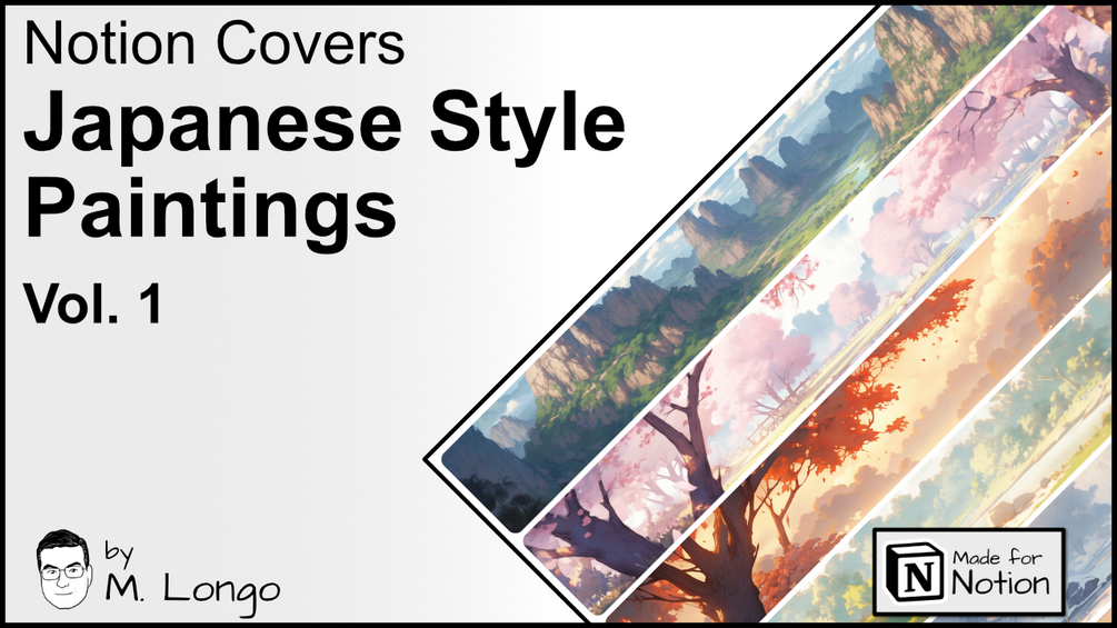 38 PNG images in the 5:1 ratio to be used as covers on your Notion Pages.